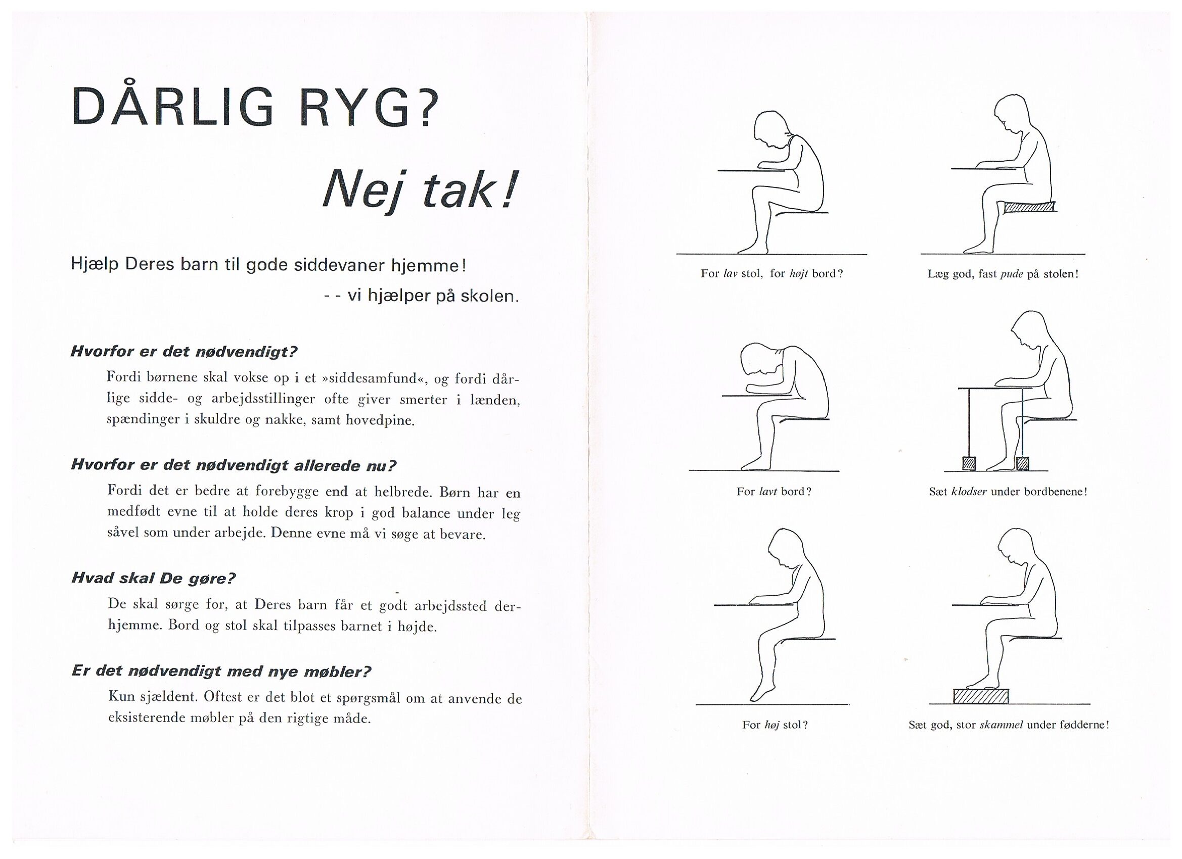 Den første brochure ”Dårlig ryg? Nej tak!”